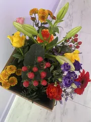 お花が毎週増えてしまい玄関先においていたらお花屋さん状態😆暖かくなって蜂さんのお仕事も活発化したおかげで娘に「ジャングルなんとかして…蜂が家に入ってきたら困る」って言われてしまいました😅プランターに寄植えしようかと思っていたけどプランターも出払ってしまっていたので箱寄せにしてみました。鉢を箱に入れた