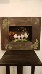 フラワーフレームが気に入ってしまい、ワークショップでいくつか作ってしまいました。造花をいれたり、多肉植物を植えたり、いろいろ楽しんでます。庭に置き去りになっていた小鳥さん達、フラワーフレームの中に収めて、我が家の庭に飾ろうと思います。雨に濡れても大丈夫な素材で飾りました。