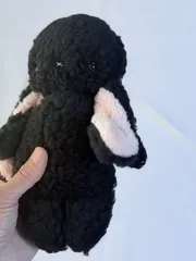 黒うさぎと白うさぎ すごく垂れ耳のうさぎさん作りました。このレースの帽子を被せてあげたくめちゃくちゃ垂れ耳です。
