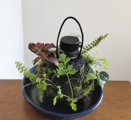 ボトルプランターを使って 昨年 アンデルセン公園でのWSでお世話になった"ピクタ"さん苔テラリウムに使う 苔や植物を販売している会社ですプランツワールド(イベント)に出店されたので行ってきました💕シダ類を組み合わせたものを購入シダ類が4種入ってます🌿(↗️の長い葉は使わず)ライムモスは 頂いちゃいました😆 昨年のボ