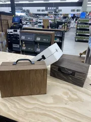 トランク風小物ケース 左側ウォルナット作りました🫧右の➡️お友達の作品アンティークなローズ🥀マステが素敵な作品手前のブラック、ホワイトはお店の見本🫧中はこんな感じ😅😅😅乾燥中🫧色塗り前🫧🫧トランク風小物ケース😊 お友達と2人でのWS💕 いい感じに仕上がり💕 やってしまった😱ところは