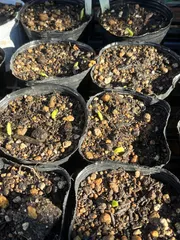 「さやえんどう」の芽が出てきました 先週の木曜日に蒔いた「さやえんどう」の芽が出てきました。可愛らしいです。この種は夏に収穫した物から取って置いた物です。多分「絹さや」です。これよりも少し前に蒔いた「そら豆」はまだ芽が出てきません。種が膨らんでいるのでもうすぐだとは思うのですが。
