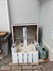 庭の水周り 気になっていた剥き出しの水回りを端材で囲いました✨