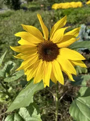 こぼれ種のひまわり🌻 夏に畑の周りで咲いていたひまわりの種がこぼれて咲きました🌻150㎝くらいのひまわりだったのですが50㎝くらいで咲いています😍ひまわり大好きなので超嬉しい☺️