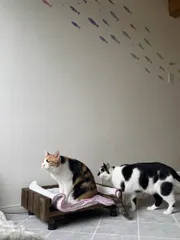 3月のワークショップで作ったペットベッドを、やっと姉に渡せました🎁 早速、ねこちゃん達が交代で使っているそうです😻気に入ってくれたようで嬉しい☺️