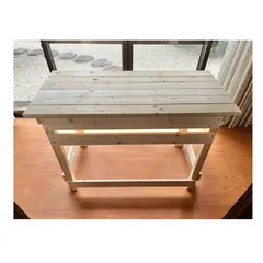 イベント用折り畳みテーブル 娘がとあるイベントに参加するとのことで、折り畳みテーブルを作って欲しいと頼まれました。『木で、持ち運びしやすい折り畳みできるもの』とリクエストいただきました😅 とりあえず、脚だけ折り畳みできるように丁番を使って制作。 折り畳んだ状態