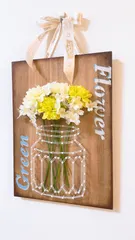 ストリングアート WS作品の【ストリングアート・花瓶】自宅にてステンシルアレンジさせて頂きましたステンシルぽんぽんしてる最中に娘が『可愛いねぇ~』『ソレいいなぁ~』と離れず呟くので上納することになりました🤣ホントはドライにした庭のお花入れて飾るつもりだったけど、娘は100均の造花を買って自分の部屋へ…いいのよ…母は…