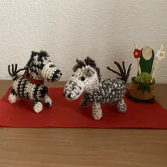 シマウマ🦓はオパール毛糸のキットで作りました🧶右の馬🐴は家の余り毛糸で。体長7cmくらいと小さいので編むのが大変でした💦パーツのつけ具合で表情やバランスが変わります(立って良かった😮💨)金具をつけてバッグチャームにしても可愛いですね👜