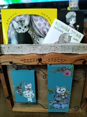 むかしむかしのマガジンラック❗ 35年位家に有るかな…昔カントリー風流行ってて❤️私のカントリー❤️などの本参考に家やお部屋の雰囲気参考にしていた頃の名残り…布や木の棒が劣化してしまいましたが枠は重すぎるほどしっかりしているのでここの所お気に入りのヒグチユウコの本をいれるのにリリメイクしてみました🐈️🐾ワイヤー渡して止めて端材で作