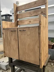 本当はエクステリアですが…… 今日は大物の【ベランダ収納庫】作りに、北本店に行ってきました。室外で使う物を室内で使いたくて WS行って来ました。 取手の位置は縦でも横でも良いそうです。『お好みで』とのことだったので、私は横につけました。 そしてやはり蝶番には手こずりましたし、新しい部品を付けるのにも少し手こずりましたした😅 で