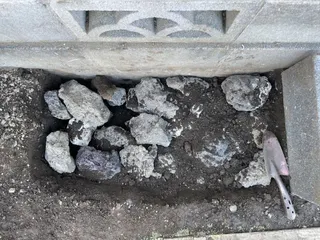 土中に隠す その8 このシリーズ?も8回目です。2度と掘り返す事は無いはずなので、場所選びは慎重に考えます。↓前回その7(リンク→ https://diy-square.cainz.com/announcements/cj2wt0rxpwnnozje )で隠した左横(園芸支柱の左横)、ブロック2枚位の穴を掘りました。↓