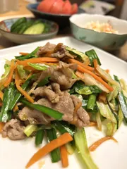 定番野菜炒め ■材料ニラ 一束キャベツ、人参、もやしなどお好みの野菜豚肉 100〜150gごま油 またはサラダ油 大さじ1くらい 合わせ調味料☆オイスターソース 大さじ1☆醤油 大さじ1☆酒 大さじ1☆砂糖 小さじ1/2■作り方①材料を食べやすい大きさに切っておく。②フライパンにごま油を熱し