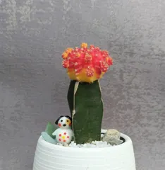 初めての緋牡丹 カインズで緋牡丹を購入☺️家で化粧砂を入れ石など置いてみました 犬か雪だるまの様なのは家にあったので🤭みんなの趣味の園芸(趣味の園芸の投稿サイト)で金子先生も緋牡丹を紹介されていましたでも先生は棘があるから嫌なんだよね〰️と🤣 そういえば柱サボテンも初めてでした💦