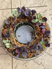 これからが楽しみ🍀 種から育てている葉牡丹かたくさんあるのでリースの入れ物買ってきて植え替えしてみました✨大きくなったらいい感じになるかな?来年はここに直に種まきしてみたいな~とも思っています😊