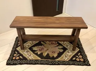 カフェ板ロングベンチ 月曜日に作ってきたカフェ板ロングベンチです。曲がりがちな下穴あけも久しぶりのダボ埋めも楽しくできました🪚いつもは時間のかかる塗装もスポンジでスルスルスムーズに塗れました🧽お気に入りの作品が完成✨✨このまま自然の変化を楽しみながら使っていこうと思います😊 この投稿でピッタリ50000ポイント