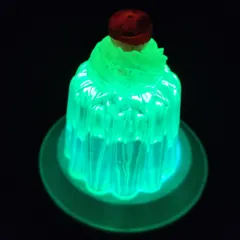 ゲーミングゼリー 傘の持ち手を作ったついでに2液性レジンで作ったリアルサイズゼリー。さらにシリコンホイップ&チェリーオン♥️シリコンにはラメを混ぜ混ぜ。 思いつきでダイソーのライトに乗っけたらめっちゃ光るゼリーに😂😂😂次女命名「 ゲーミングゼリー」かわいい間接照明になりましたが、やっぱり周りがやたらと緑にな