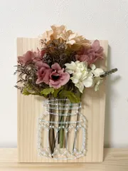 先月参加したストリングアートのWS 最初は参加者の方とおしゃべりしながらやれてたけど、だんだん独り言→無言、、、と余裕がなくなった🤣 ベースの板は無塗装、糸は持ち込みの水色、花は100均で買いました☺️