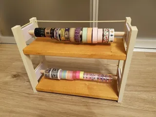 ありがとうキャンペーン ワークショップで作った「キッチン栽培ラック」です。 アレンジしすぎと怒られてしまいそうですが💦マスキングテープラックに変身です。今までワークショップで勉強した事を復習しようと、ドリルで穴を開けて棒を通して作ってみました。 もちろん丸棒を外せば、本来の目的であるキッチン