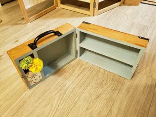ありがとうキャンペーン(トランク風ケース) こちらもワークショップで作った「トランク風小物ケース」です✨奥はまだ取り付けていませんが、コーナーに金具をつけてみました。うん。結構イイ感じです♪♪ このワークショップが始まってすぐに参加したのですが、取っ手のビスが長くて貫通してしまったり😅色々ハプニングはありましたが、先生と試行錯誤して