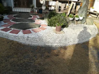 玄関前スペース 去年の夏、芝生を剥がす所から全部自分でやりました😆
