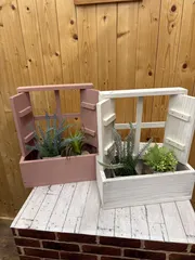 ガーデンサインプランター アレンジ 2年前に作成したガーデンサインプランター。玄関横でプランターを入れて使用していました。昨日、その隣にあった違う作品のプランターの下にムカデが😱 去年はこの場所には見かけなかったので安心していたら😭その作品は看板付き鉢置きスタンドなのですがそちらはだいぶ塗装が傷んでいたので解体しました。2021年の作