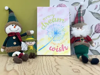 タイニーサインボード作ってきました✨ 「Every Dream/夢の始まりは願いから」です🙌🏻 デザインから柔らかいカラーをイメージしてたので、全体的にパステルカラーでやってみました☺️ステンシルする前のボードです🙌🏻綿毛?の部分が細かくて、ボードに貼り付けるのが結構、難しかった