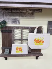 アデリアレトロなフラットポーチとトートバッグ アデリアレトロなフラットポーチとトートバッグを作りました✨。花の輪で夏色にしたら、ハイビスカス🌺風になっちゃった😅アデリアレトロのロゴをホワイトにしたらあまり色が映えてなくて、よくわからなくなっちゃった😅また別の柄でも作りたいなぁ😊