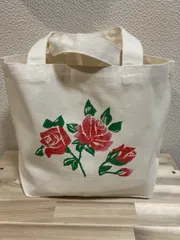 アデリアレトロなトートバッグ 今日のWSはトートバッグにステンシル。バラの花だったのでやっぱり赤🌹にしました。ちょっぴり冒険して花びらの先に白を入れてみました。 お気に入りの作品になりました🥰 スタッフさん参加者楽しく仕上げる事ができました。ありがとうございました😊