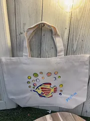 アデリアレトロなトートバッグ 熱帯魚を作りました 泡の色をいろいろあわせたら暗くなってしまいました