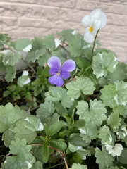 NEW 季節ハズレのビオラ✨ グレコマの間からビオラの花が🌸こぼれだねだと思いますがちょっと季節先取り⁉️かわいい寄せ植えになりました🤭