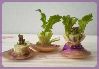 ■育てた野菜蕪の葉リボベジ・3蕪■エピソード(チャレンジしたきっかけなど)今回の蕪も茎がしっかりしていたので、葉を付けてくれる期待を込めて水耕栽培にチャレンジしてみました。開始 1月20日⬇️①上②右下③左下1月31日…葉が少しずつ伸びて、生命力を感じます🥬①上②右下③左下🥬僅か12日間でしたが😅、