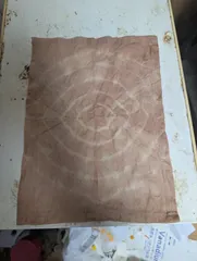 先日、干し柿を作った時に処理として熱湯処理したあとのお湯が若干赤くなっていたのに気がついて、「これ、なにかに使えないかなぁ?」 って思って、そのあとも干し柿を作るために熱湯処理をしていたら、ここまで濃くなりました。 そこで、いっそ染めちゃおうと思って、100均で無地のランチョンマ