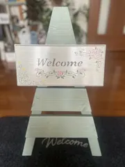 リーススタンド 昨日リーススタンド作ってきました☺️色がなかなか決まらず、迷いに迷ってダスティグリーンにしました😅フックは探して後でつけます。 とりあえず以前作ったwelcomeボードを飾ってみました💕この位のリース飾るといいですね😃 先生、ご一緒した皆さん楽しかったです💖