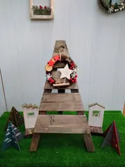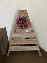 リーススタンド 市販のスノコを使ってなんちゃってリーススタンドを作りました🪜強度があやしいのであまり重いものは掛けれないと思いますがクリスマス🎄の飾り付けに使いたいと思います😉