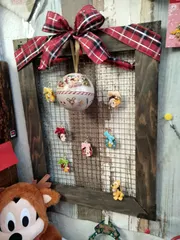 2025年DISNEYChristmasオーナメントフック🪝付きなので良い感じに飾れます✌️玄関のお菓子や小物…🎅🎄DISNEYのChristmasグッズ❣️■作品内容ワークショップで作成アイアンペイントのディスプレイネットがDISNEYChristmasグッズとベストマッチです❣️■工夫ポイントC