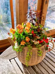 🎄クリスマスの寄せ植え ■作品内容古民家カフェのワークショップに行って来ました♪ポット型のかごにビオラ、チェッカーベリー、金魚草、やぶこうじなどを寄せ植えしました■工夫ポイントチェッカーベリー、グリーンはカゴから垂れる様に配置して、やぶこうじは3つにバラして使いました。※以下カインズクリスマス部門のみ入力■使用した商品