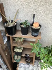 ミニ足場風ラック 割と小さくて、何を置こうかと思っていましたが、ベビーアガベを乗せたらいい感じ。伸びて来た子は一番上にした。