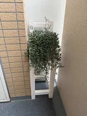 チェア型ミディアムガーデンスタンドにルビーネックレス ■作品内容WSで作ったチェア型ミディアムスタンドにルビーネックレスの鉢植えを置いています。ちょうどよい大きさで、もりもりに育ちました😊■こだわりポイント白い椅子に猫型ピックが映えます。