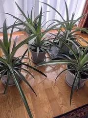 我が家のパイナップルパーク パイナップルを育て始めて2シーズン目となりました 今年の夏は初めて屋外に出してみました そうしたら数ヶ月で大きくなりました 気温も下がってきたので屋内で育てていますが、かなりリビングを占領されてきました