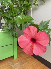 🌺ハイビスカス 咲きました。 待ちに待った大きな花が咲きました。まだつぼみがたくさんあって、これからガンガン咲いてきそうです。楽しみです。沖縄って感じです。