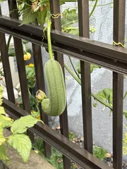 へちま ■育てた野菜へちま■エピソード(チャレンジしたきっかけなど)へちまの実がなっています。私は食べないけれど、食べるとなす🍆のようで美味しいらしい。大きくなると繊維質が多いからどうなんだろう❓