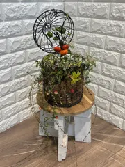 鳥かごの寄せ植え(ハロウィン🎃) "鳥かごの寄せ植え" ハロウィン🎃 鳥かごに4種のお花を植えるポットも大きいし こんなにも入るのかな❓鳥かご、そんなに大きくないよ💦 ソラナムパンプキン🎃を中心にクランベリー、ジュズサンゴ、黄金カズラ 鳥かごからクランベリーとジュズサンゴを出すこの作業が地味に大変😥 皆