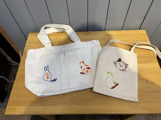 ■作品内容 バックとサコッシュにステンシルしました ■作品のこだわりポイント 両面に可愛い🩷ねこをたくさんステンシルしました