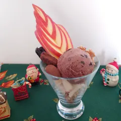 ■作品内容クリスマスのデザートにパフェを作りました😋■工夫ポイント下から、はとむぎ、バナナ、りんご、チョコレートアイス、生くるみ、ミックスナッツチョコレート、プルーン、りんごを盛り付けました。 ■使用した商品