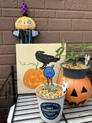 ハロウィン🎃の寄せ植え 久しぶりのみなと店での寄せ植え講座🍀🍀ゴブレットのような鉢に🍷銅葉ぷちダリアを中心に千日坊(ふたつにわけたよ!)、パープルフラッシュ、ジュズサンゴもみじ葉ゼラニウム🍁、黄金カズラを3箇所に分けて植え込みました。涼しくなり、お店にお花の数が増えて🪴🪴🪴毎日がお花に癒される日々になりそう💕🍀