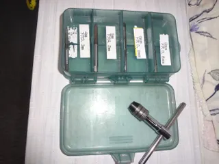 あると便利→タップ切り あると便利なタップ切り(ネジ溝切り)です。M4~M8ボルトまで常備してます。 ↓ 使用するドリル径 下段→下穴サイズ 上段→使用するボルトサイズ 貼っておくと便利 です。ねじ切り回しとセットで500円前後であります。