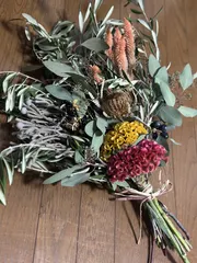 オリーブの収穫祭に参加してきました。オリーブのリースを作る体験ができたのですが持ち帰りさせてもらって家にあったお花をプラスしてスワッグ作りました〜💚🫒𓂃🌿𓈒𓏸