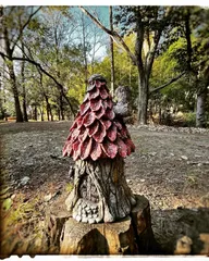 モルタルデコ 葉っぱ屋根のお家 ④ こんばんは♪チャイブです(*´∇`*) トップコートを塗って葉っぱ屋根のお家が完成しました。今日はお天気も良くて暖かく風も無かったので公園で撮影しました。 木は森に、、、です。 窓枠ははんだ細工、玄関灯とドアノブはアクセサリーパーツを組み合わせて黒のアイアン風塗料で仕上
