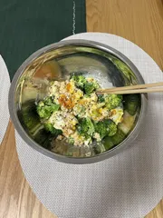 Instagramで流れていたサラダ。これは自分の好きなサラダだと思いスクショしてありました。今日は時間があったのでメインの餃子のお供に作ってみました😃恥ずかしながら、この年になって初めてブロッコリーに包丁🔪をいれました😆採点は、いろいろ失敗したので30点!😅