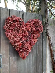 ハートのバレンタインリース 10年以上前にバレンタインシーズンの玄関飾りとして作りましたが、ドアの色に映えず室内に飾ってました❤️ 英字新聞を着色しワックスペーパーに加工して作ってあるので、ほぼ褪色してません✨